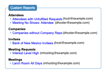 You’ll see this report page as soon as you’ve saved a custom report from any location in MeetMax (more on this below).