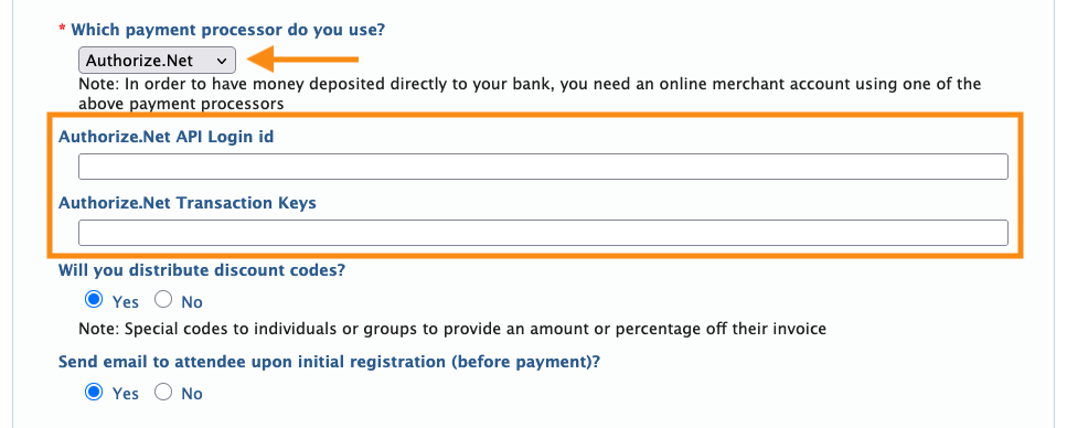 - • If you plan to use discount codes at your event, choose Yes.