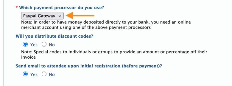 - Step 2. In the Registration Payments section, choose Yes to have MeetMax process credit card transactions for your event.