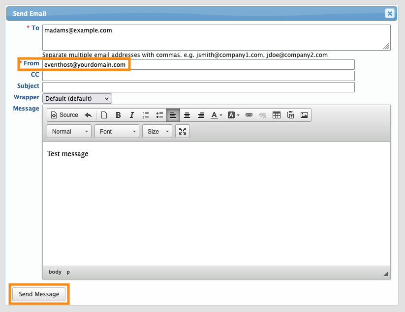 The easiest way to do this is to send it from a test user on your Attendee List. You can create one, or use one you’ve already created.