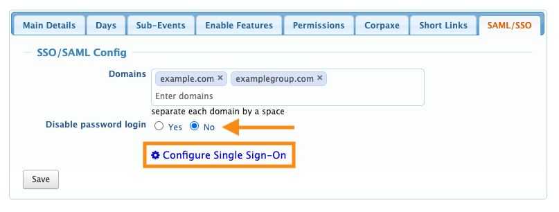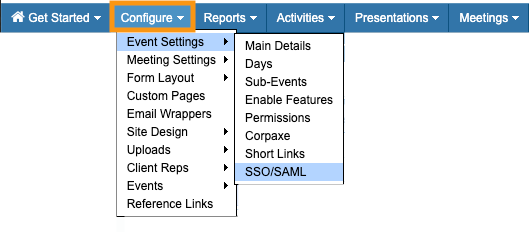 - Step 1. Head to the Configure tab. Choose Event Settings, then SSO/SAML: