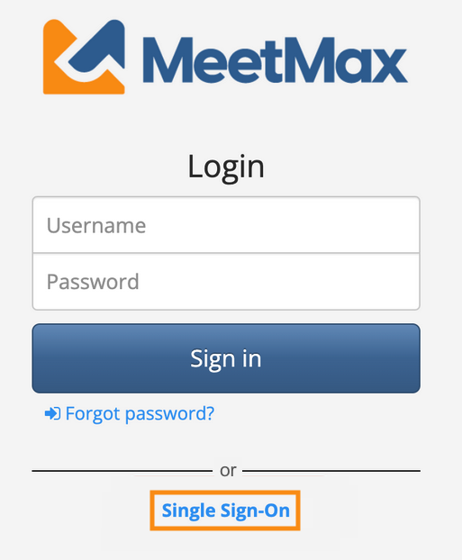 - If you’re allowing both types of login, the user can click the SSO link, or enter their MeetMax credentials.