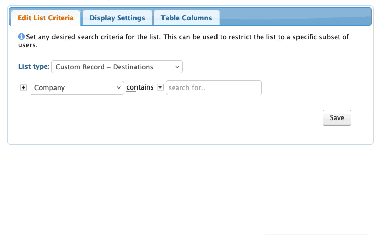 - Let’s choose our Destinations Custom Record for this example: