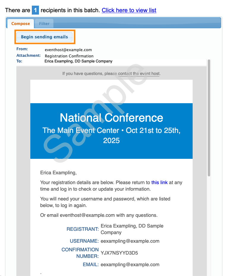 Once you've added the Attendee, it's time to let them know they're registered for your event. We'll do this with a batch email.