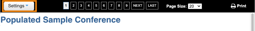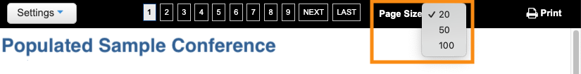 For large events, however, you might want to set larger print batches. In that case, use the Page Size menu to choose batches of 50 or 100 schedules: