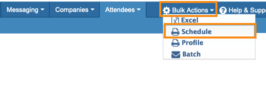 Once you're in the Attendee List, the schedule printing function is in the top right corner, under Bulk Actions: