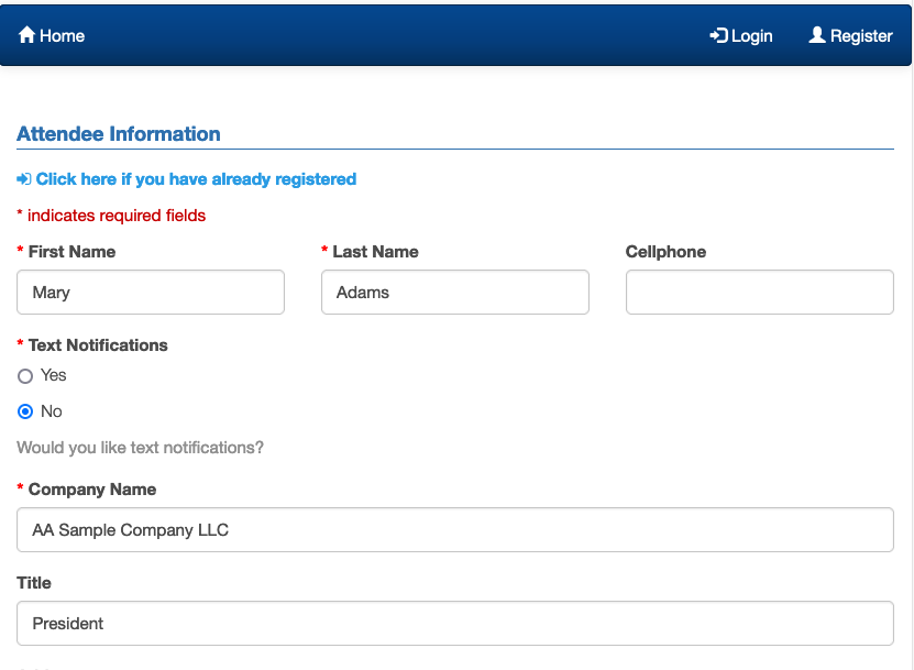 It’ll be filled out with the details you’ve already added. The Attendee will complete the rest of the fields: