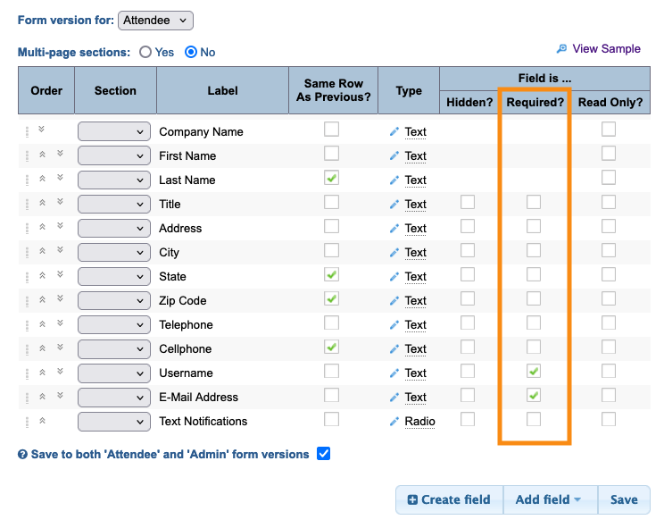 You can set any form field as Required (as shown above). When you add or import your Attendees to MeetMax, you’ll need to enter information in all of the required form fields. So you’ll want to set the Required fields based on the details you have now.