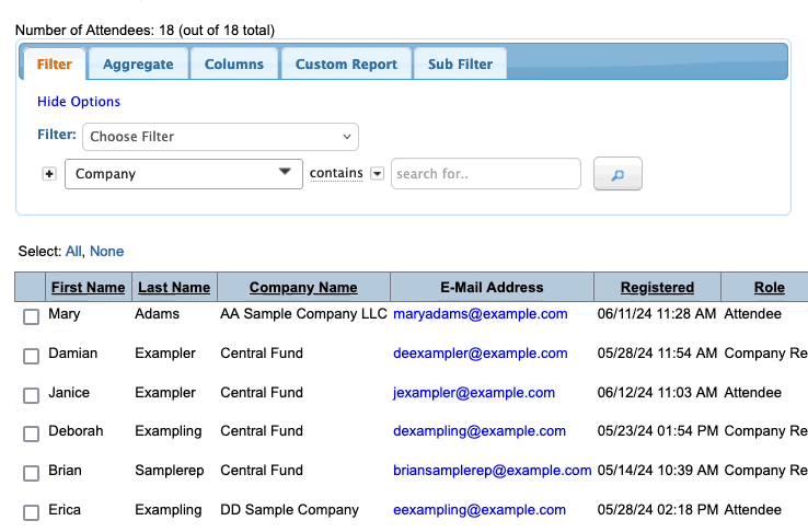 In the Attendee List, you’ll keep track of who’s responded to your request for information: