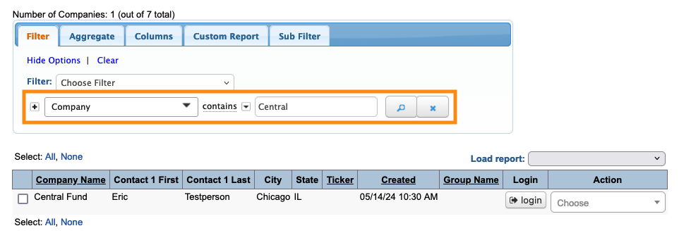 - Step 2. Filter the list by company name, so you can narrow it to the single Company you need: