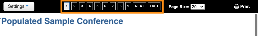 Each of these “pages” is a batch of schedules. By default, MeetMax prints schedules in batches of 20 at a time. At the end of each batch, you’d click on the next page number and then print that batch.