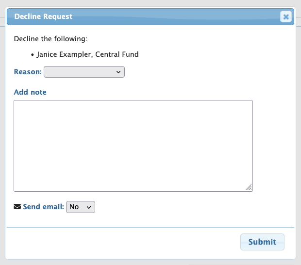 If the Company needs to decline a request, they’ll add a reason for the decline. They can also add a message to the requestor: