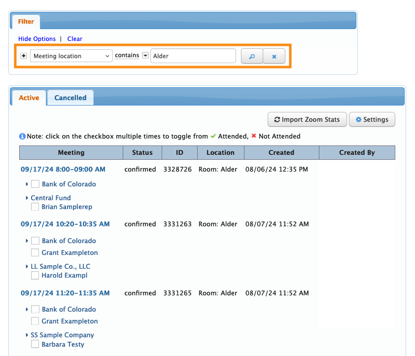 - Step 2. Filter the list to include only meetings scheduled in the location you want to delete:
