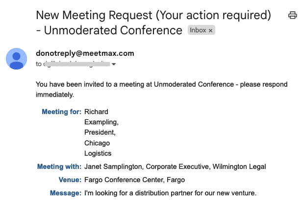 The recipient also sees the same notice in their MeetMax account Inbox: