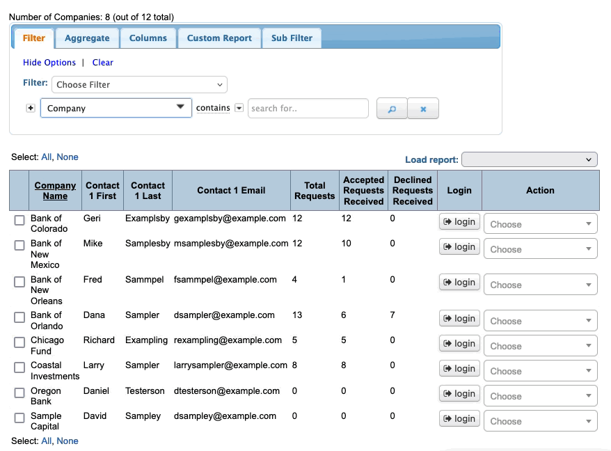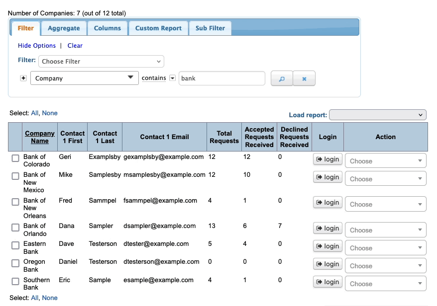Here, we’re filtering for participating banks that haven’t filled out a Profile form yet: