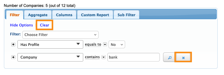 - Click Clear to clear all current filters