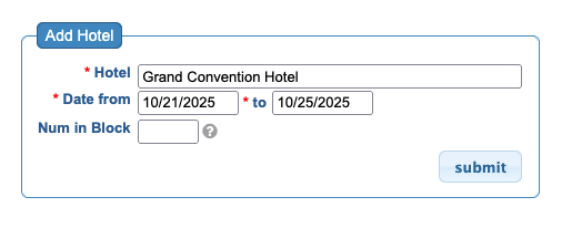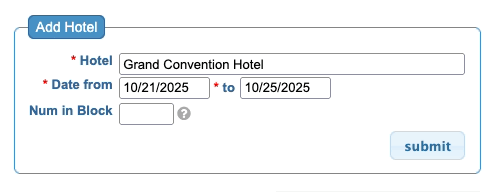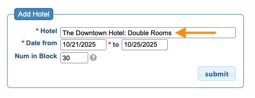 If you’re tracking your event’s hotel bookings in MeetMax, you’ll enter your room blocks so participants can request reservations.