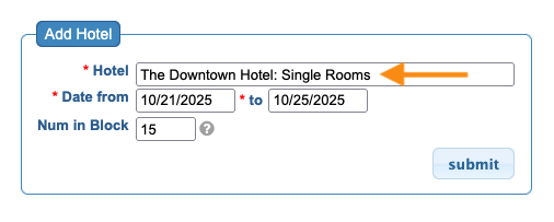 - Step 3. In the Num in Block field, add the number of rooms you’ve contracted with this hotel.