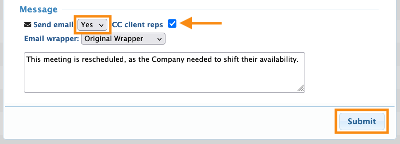 You can add a personal note if needed. You can also cc the Attendee’s assigned Client Reps:
