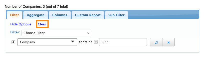 If you have filters in place and want to remove them so you capture all Companies, click Clear: