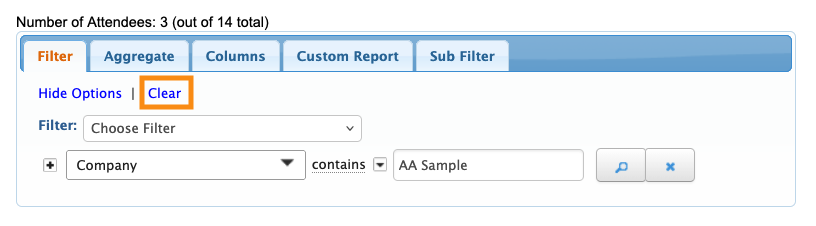 If you have filters in place and want to remove them so you capture all Attendees, click Clear: