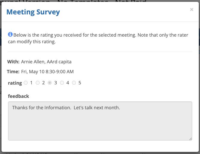 If your event is using the Meeting Feedback feature, Companies will see a clipboard icon in their Meetings leads. These are Attendees who’ve left feedback on their meeting: