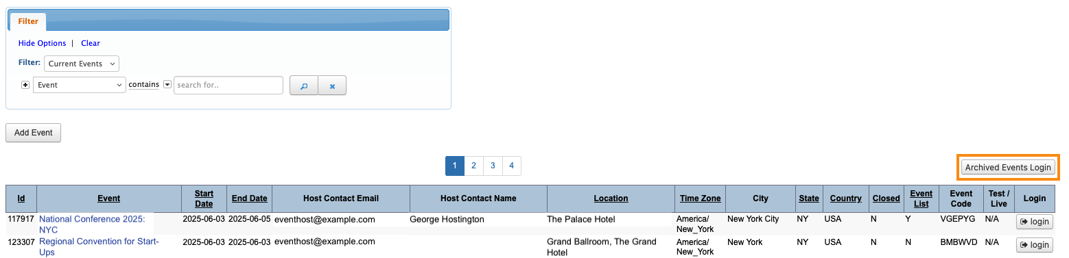 You'll notice that when you go click the Archived Events Login button, you're taken to a new tab in your browser.