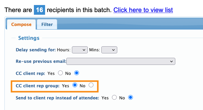 • Communications: The Client Rep can be cc-ed on any batch email that’s sent to their assigned Attendees.