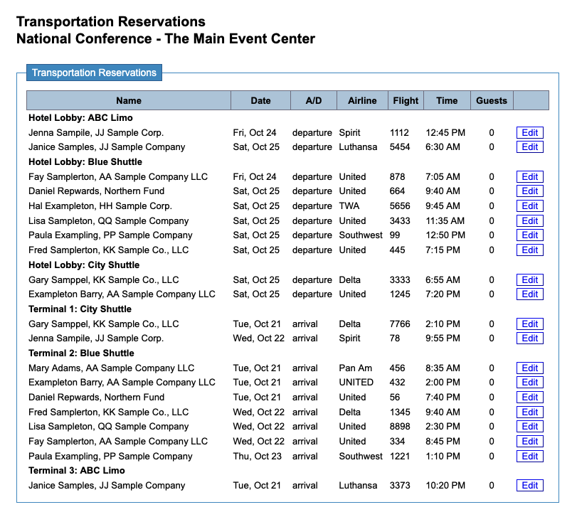 This list gives you an overview of all transportation reservations for your event. You can update them from here as well.
