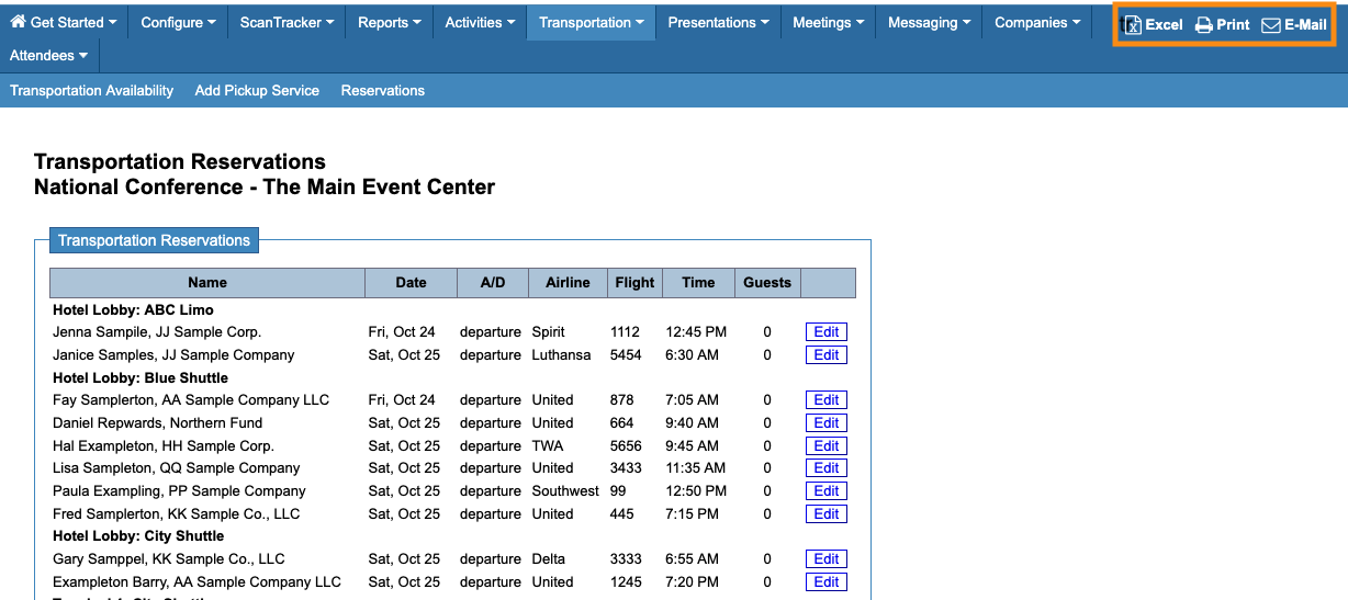 - The Availability List lets you export lists of reserved Attendees for each transportation service.