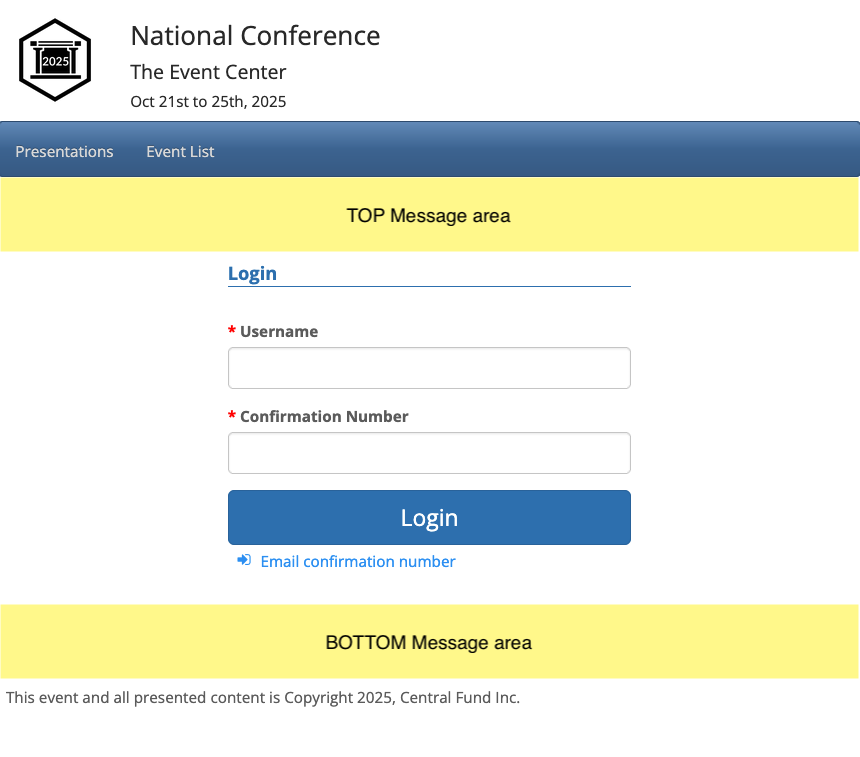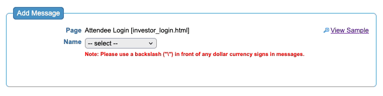| We’ll show the Attendee login page in this article, but the process is the same to add Messages to Company login pages. | |