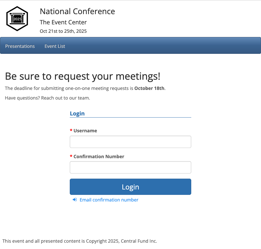 MeetMax has multiple versions of the login page, because we offer many different ways to manage participants logging in.