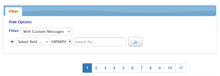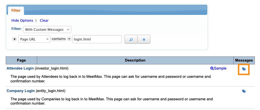 Our team will set up the correct login pages for your event’s structure. At that point, you’ll be able to use the With Custom Messages filter to locate them, as shown below. (We’ll cover this in more detail in a moment):