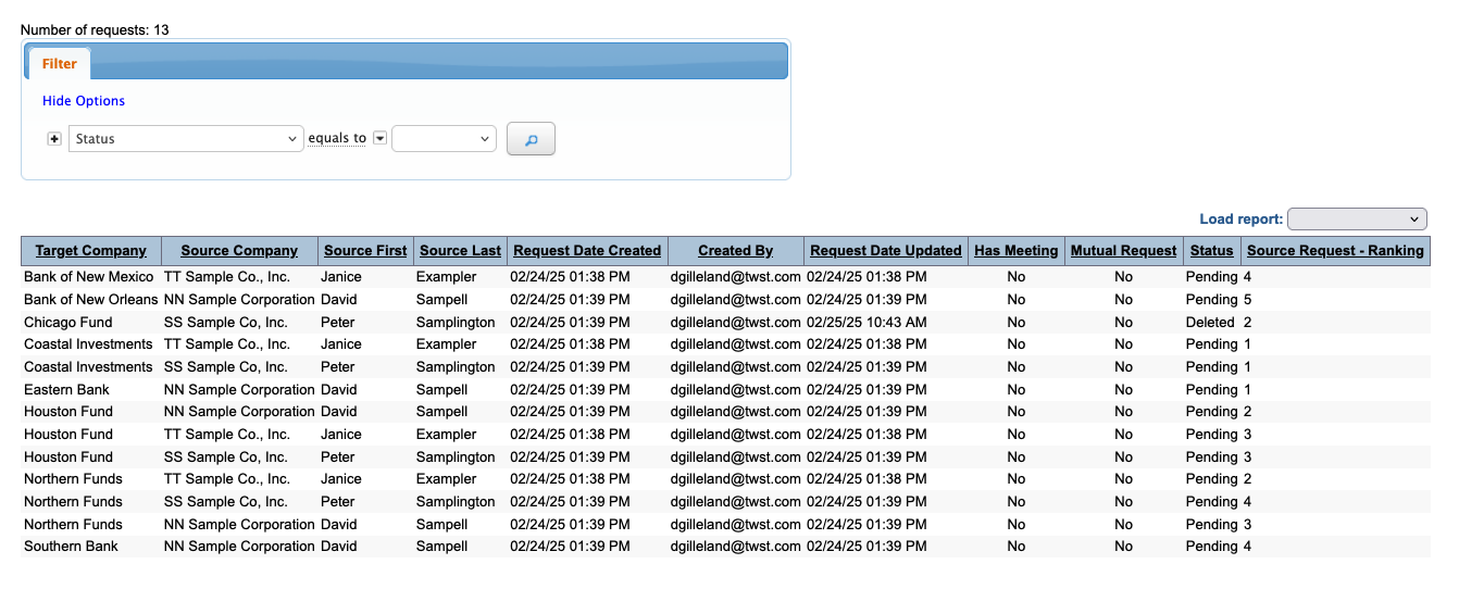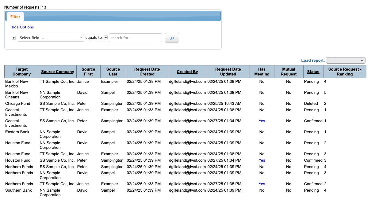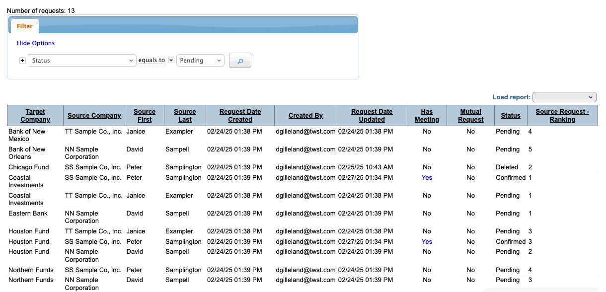 You can even combine filters! Here’ we’re looking for one Investor’s pending meeting requests: