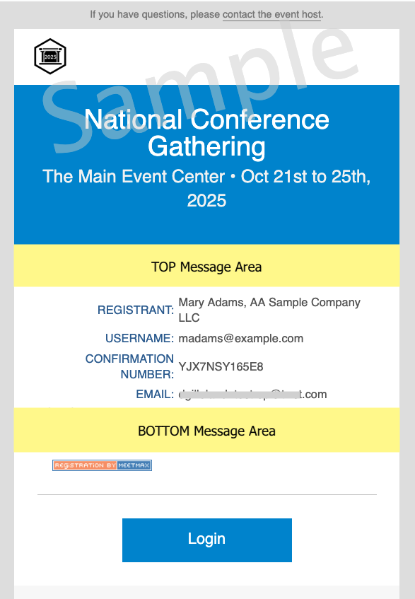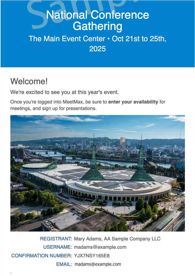 MeetMax has multiple versions of these types of emails, because we offer many different ways to manage registration.
