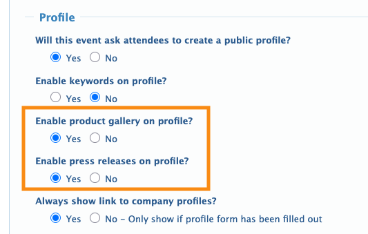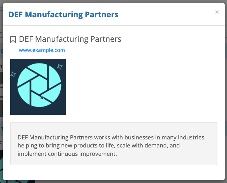 The core content of this pop-up comes from your event’s Profile form. Your Attendees and/or Companies can fill it out, or your Admin team can: