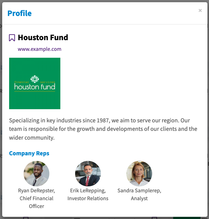 If you enable this setting, the Company’s profile will list all of its Company Reps, like this: