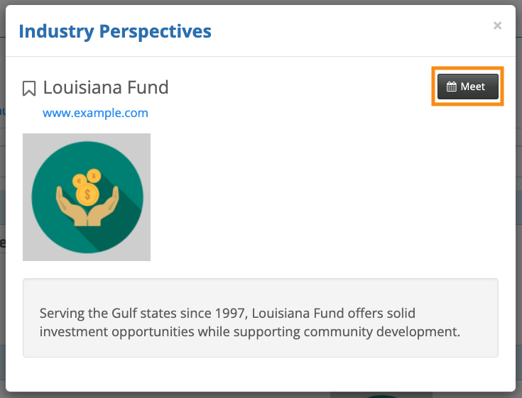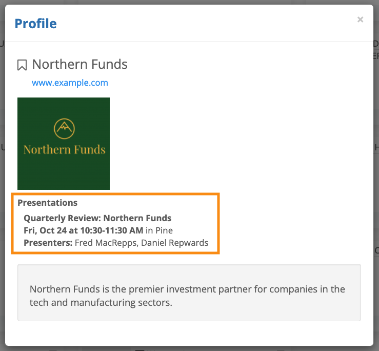 | These options will appear on the pop-up when it’s viewed from the Presentations page, but not when it’s viewed from the Request Meeting page. |
