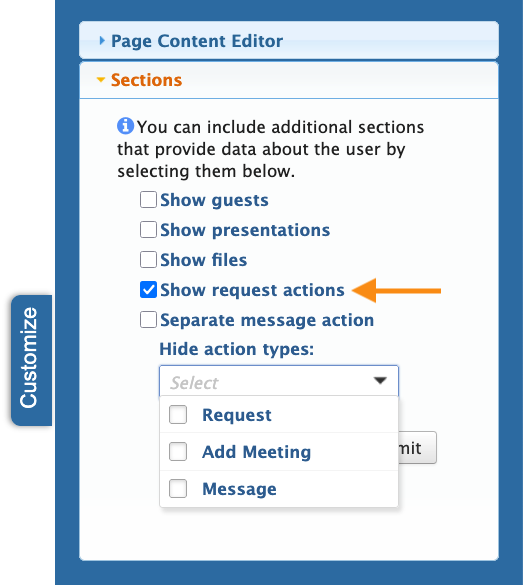 This setting makes it possible for participants to submit meeting requests and/or messages from the Profile pop-up.