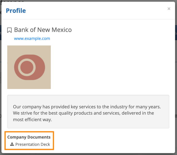 If you’re having Companies upload files to MeetMax (such as presentation slide decks or other corporate documents), you can add download links to the Profile pop-up: