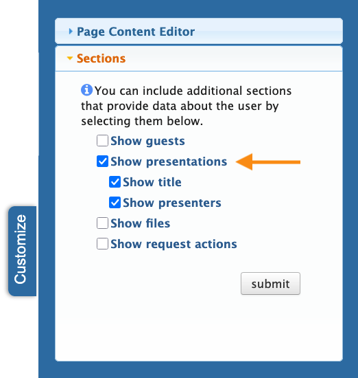For anyone who’s a presenter, you can add the date and time of their sessions to their profile.
