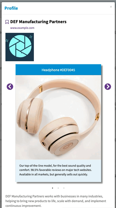 Your participants will view these profiles in the form of a pop-up. Below is the default layout: