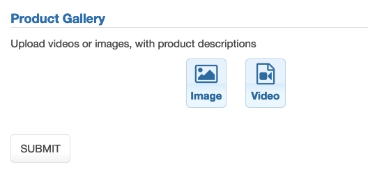 When you enable this option on the Profile form, participants can click the buttons to upload product images and videos, along with description text: