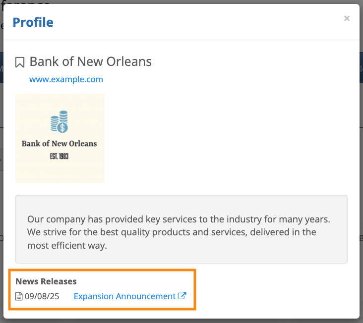When you enable this option on the Profile form, participants can click the icon to add press releases. They can either paste in the content, or upload a PDF: