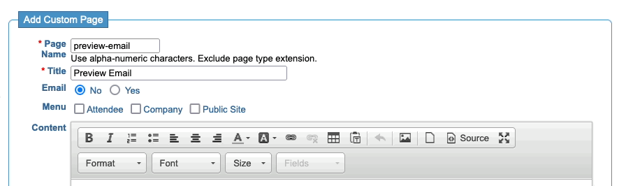 | As you might guess from the name, Custom Pages can also be used to build web pages for your event. |