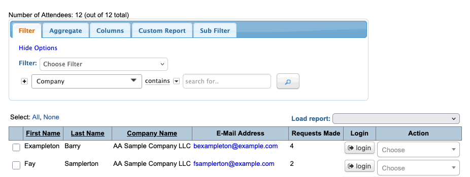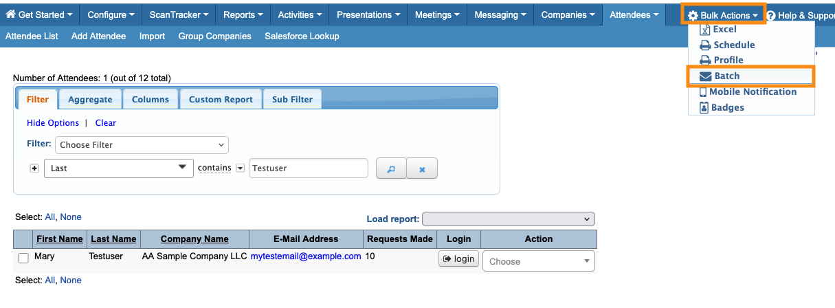 You might need to create a new test user for this. In MeetMax, once you add a user with one role, they can’t be changed to a different role. - Step 2. Now, head to the Attendee List or Company List - whichever one this test user appears on: