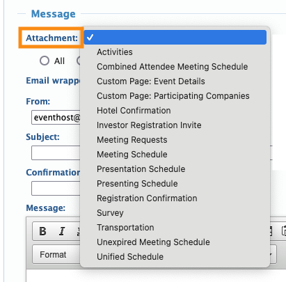 - Step 5. You’re now in the batch emailer. Scroll to the Attachment menu and choose the one you want to test. (Remember, your Custom Page emails also appear in this menu.)