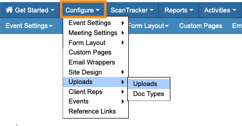As an Admin, you’ll use the Configure tab to add and manage general file uploads for your event: