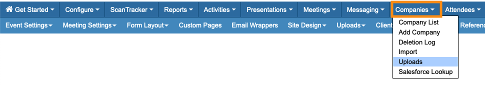 MeetMax maintains two master lists of uploads - one with your own event uploads, and one with Company-specific uploads.