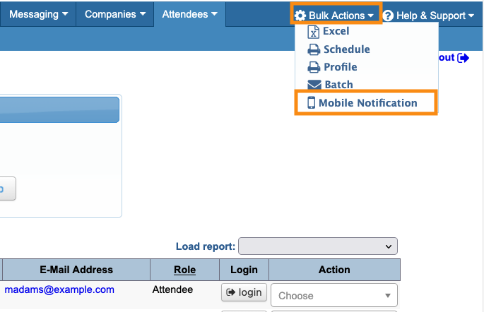- Step 1. To send a mobile notification to one participant, start in either the Attendee List or Company List: